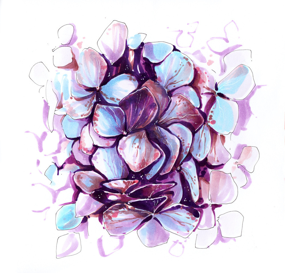 На примере лепестков покажу как делать мягкий градиент маркерами.